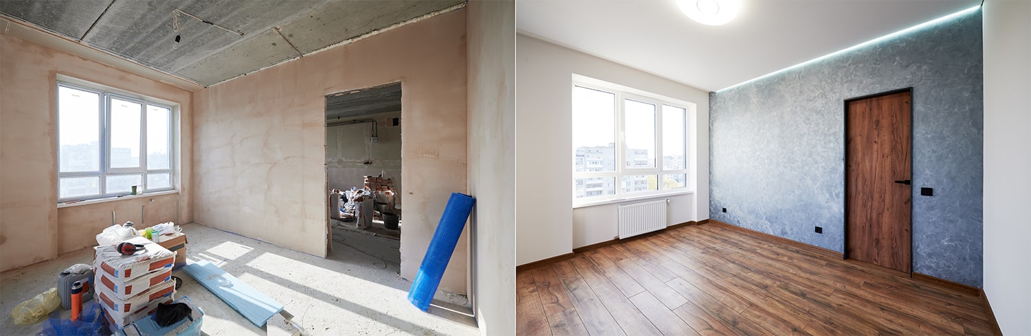 既存の間取りをそのままで、壁や床を張り替える事により、気分一新するも良し、既存の天井や壁床を解体して、間取り変更で自分の思い描いたお部屋作りも良し。